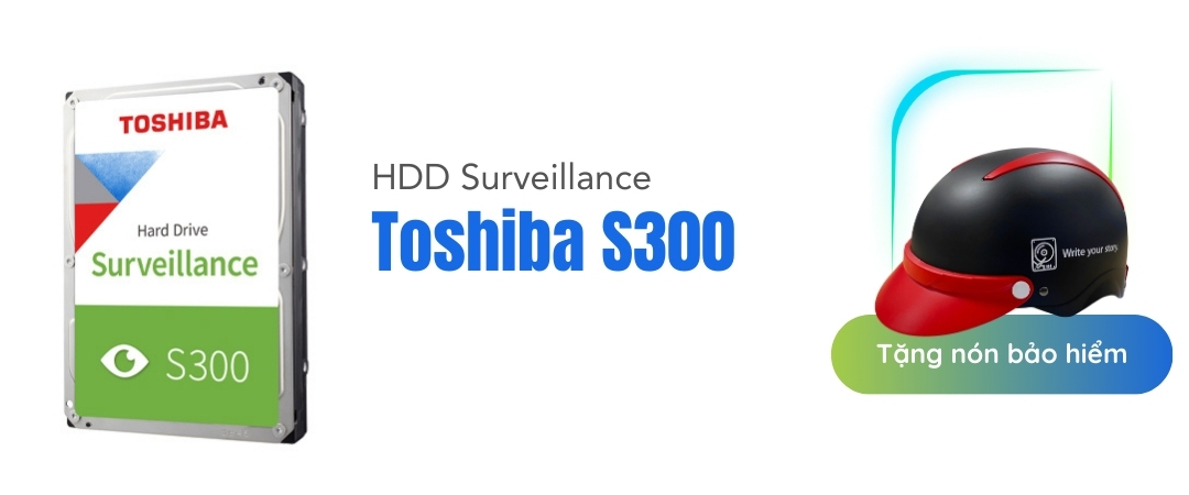 - Tặng nón bảo hiểm Toshiba khi mua ổ cứng Toshiba S300 Surveillance
