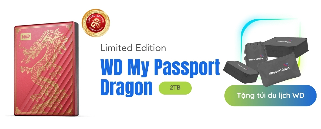 - Tặng bộ túi du lịch WD khi mua ổ cứng WD My Passport Dragon Limited Edition