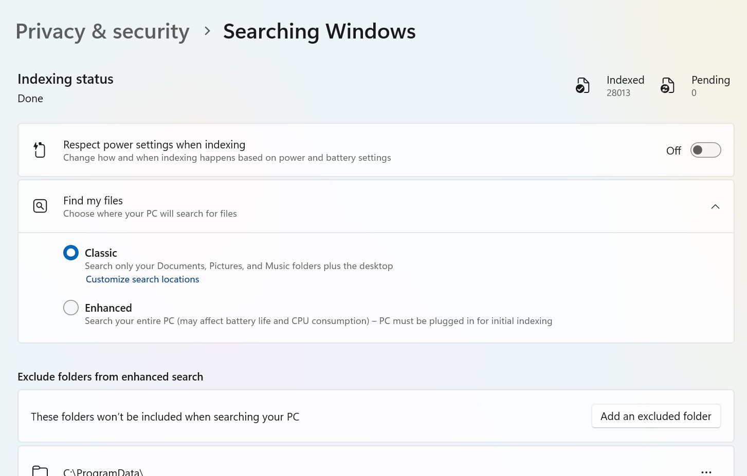 Tính năng Windows Search Indexer hỗ trợ tìm kiếm nhanh nhưng thường xuyên ghi dữ liệu lên SSD, ảnh hưởng đến hiệu năng và tuổi thọ ổ NVMe theo thời gian. Nếu ổ chỉ được dùng để cài đặt game hoặc ứng dụng, bạn có thể tắt tính năng này để giảm tải cho ổ đĩa.