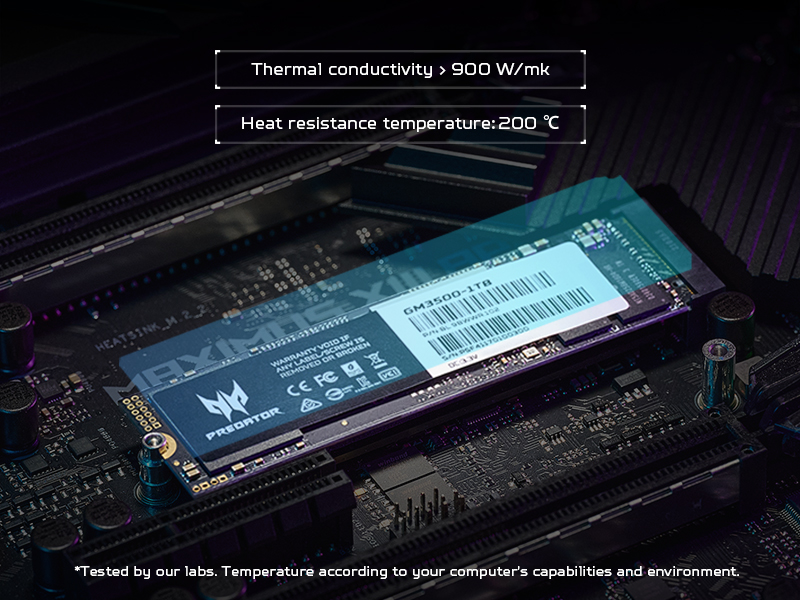 Với thiết kế tiết kiệm điện năng, Predator GM3500 lý tưởng để nâng cấp và mở rộng dung lượng lưu trữ cho PC, laptop và laptop siêu mỏng của bạn. Mặt sau được trang bị bộ tản nhiệt lá đồng composite tùy chỉnh để tản nhiệt hiệu quả, đảm bảo ổ SSD này hoạt động tốt ngay cả trong các tình huống đọc và ghi tốc độ cao liên tục và chơi game trong thời gian dài.