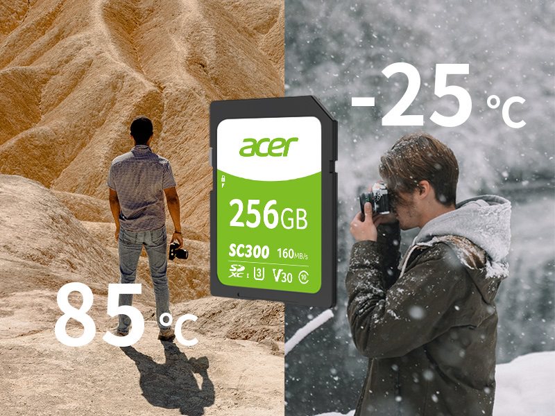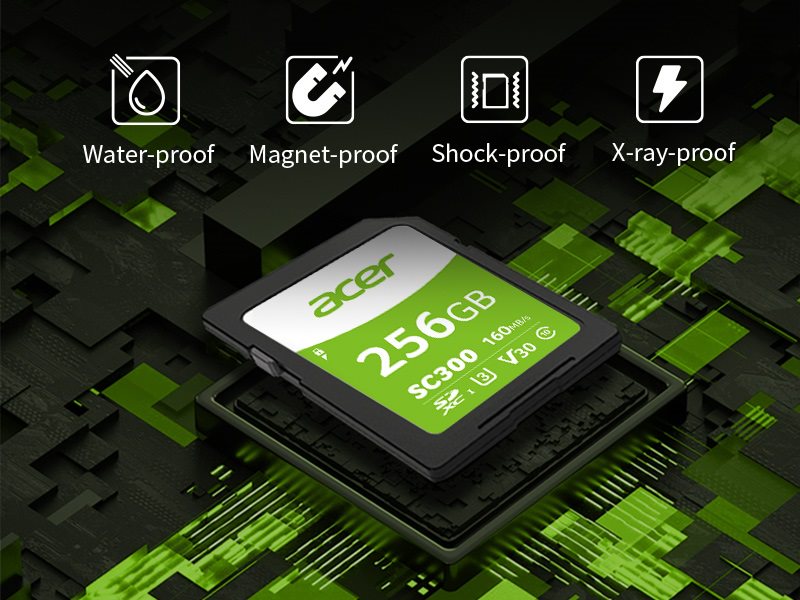 Ngoài kia là một thế giới khắc nghiệt, nơi nước, tia X, từ tính, chấn động và các mối nguy hiểm khác có thể làm hỏng vĩnh viễn ảnh hoặc video mà bạn đã vất vả kiếm được. SC300 sẽ giúp các chuyên gia giải quyết mối lo ngại này. Ngoài các thử nghiệm nghiêm ngặt và trải qua nhiều nhiều lần để đảm bảo độ bền của SC300, Acer còn bổ sung chế độ bảo 5 năm cho thẻ nhớ, giúp người dùng an tâm sử dụng.