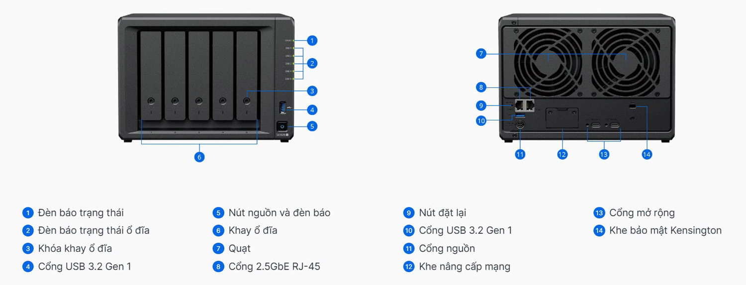 Khi nhu cầu lưu trữ tăng cao, người dùng có thể dễ dàng mở rộng lên 15 khay ổ đĩa bằng cách kết nối với hai thiết bị mở rộng DX517, đáp ứng dung lượng lên đến hàng trăm terabyte mà vẫn đảm bảo hiệu năng và độ ổn định.