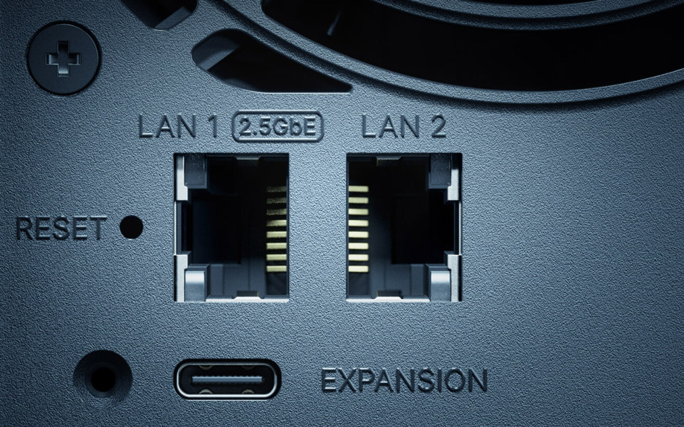 Thiết bị tích hợp cổng mạng 2.5GbE, cung cấp băng thông cao hơn so với cổng Gigabit truyền thống, giúp tăng tốc độ truyền dữ liệu và cải thiện hiệu suất mạng. Ngoài ra, DS425+ hỗ trợ hai khe cắm M.2 NVMe SSD, cho phép sử dụng bộ nhớ đệm để tăng tốc độ truy cập dữ liệu và cải thiện hiệu suất hệ thống tổng thể.