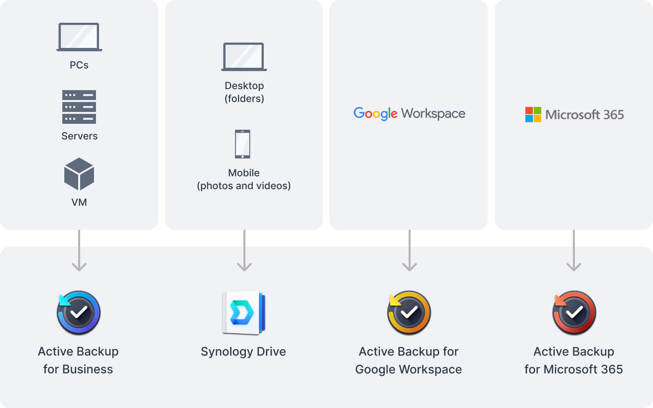 Sao lưu hệ thống Synology: Bảo vệ toàn bộ dữ liệu, ứng dụng và cấu hình trên hệ thống Synology với các bản sao lưu theo lịch trình.