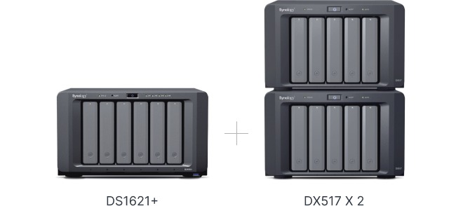 Trong trường hợp bạn có nhu cầu muốn mở rộng giới hạn lưu trữ mà không muốn thay ổ cứng, bạn có thể nâng cấp sức chứa của DS1621+ từ 90TB (6-bay) lên 234TB (15 bay) bằng cách sử dụng DX517.