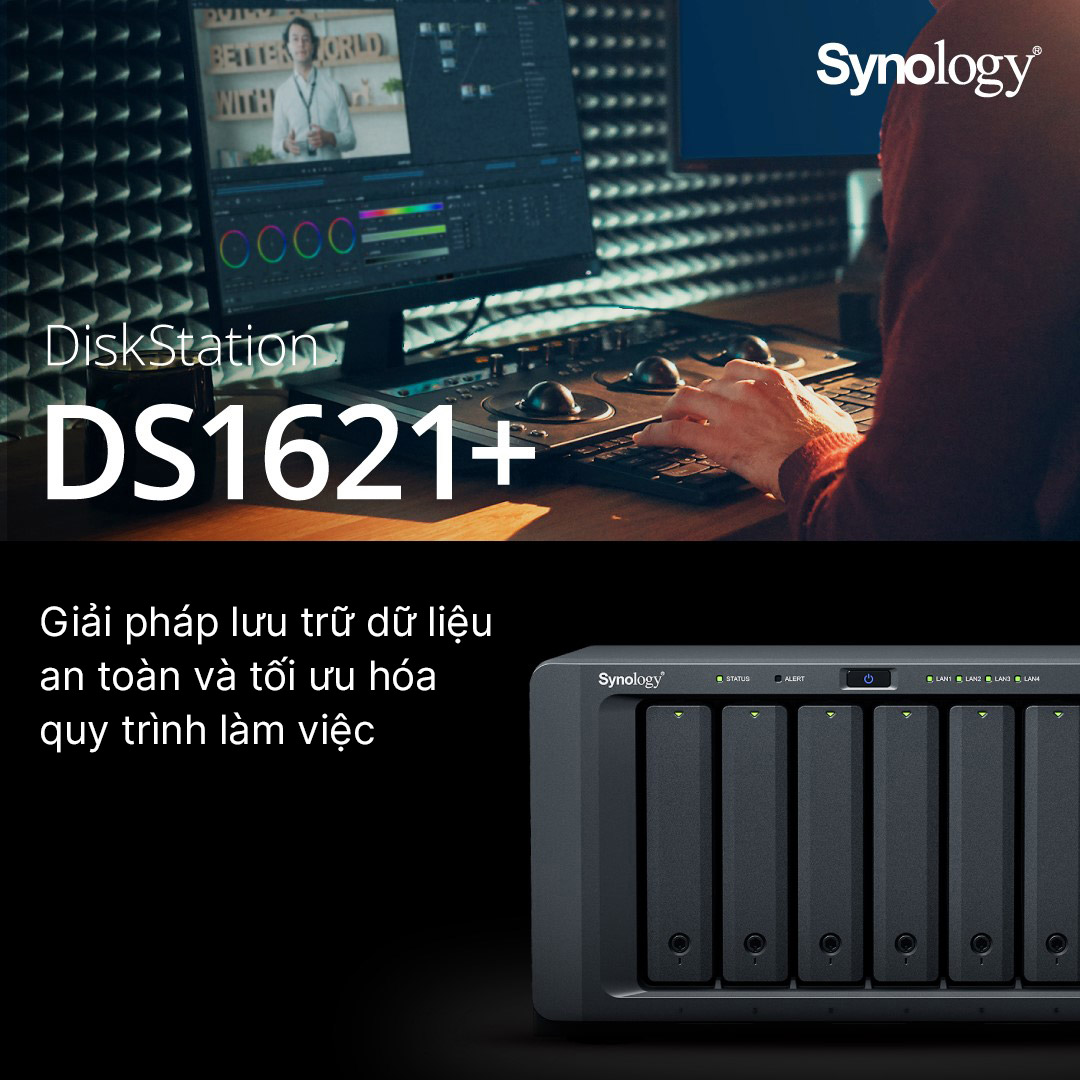 NAS 6-bay Synology DS1621+ là giải pháp lưu trữ mạng mạnh mẽ, được thiết kế để lưu trữ và bảo vệ các tài sản dữ liệu quan trọng. Được trang bị CPU AMD Ryzen™ 4-core 2.2GHz và bổ sung thêm 2 khe lắp ổ cứng SSD M.2 2280 NVMe, Synology DS1621+ hỗ trợ hiệu quả cho các luồng công việc nặng, cần sự phối hợp của các đội nhóm, doanh nghiệp vừa và nhỏ.