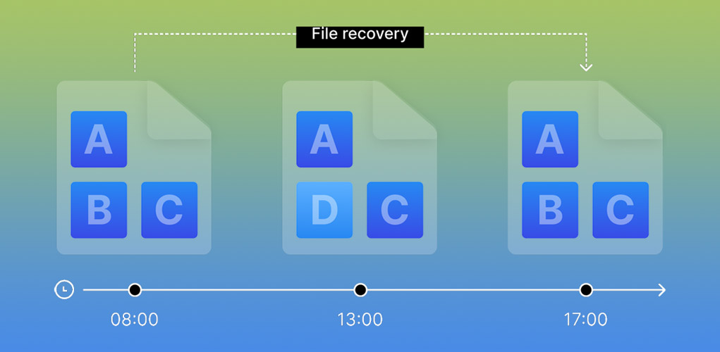 Thiết lập cấu hình bản ghi nhanh tạm thời cho các thư mục chia sẻ và LUN chỉ trong 5 phút. Nó giúp người dùng dễ dàng khôi phục các phiên bản trước của tập tin mà không cần hỗ trợ, nhanh chóng khôi phục máy ảo và sao chép bản ghi nhanh sang server khác để có được khả năng chuyển đổi lưu trữ dự phòng nhanh chóng. Tiếp tục bảo vệ tính toàn vẹn của dữ liệu với bản ghi nhanh bất biến.