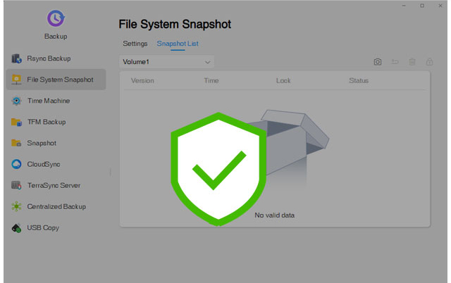TerraMaster File System Snapshot (TFSS) là một công cụ bảo vệ dữ liệu được thiết lập dựa trên hệ thống tệp do TerraMaster phát triển. TFSS “chụp” nhanh toàn bộ hệ thống tệp bằng cách khai thác các ưu điểm của các tính năng của hệ thống tệp BTRFS, vì vậy tất cả dữ liệu trên thiết bị TNAS của bạn sẽ được bảo vệ. Trong trường hợp xảy ra tai nạn, người ta chỉ cần nhấp vào danh sách ảnh chụp nhanh để khôi phục dữ liệu ngay lập tức mà không gặp rủi ro về lỗi của con người hoặc các cuộc tấn công của ransomware.