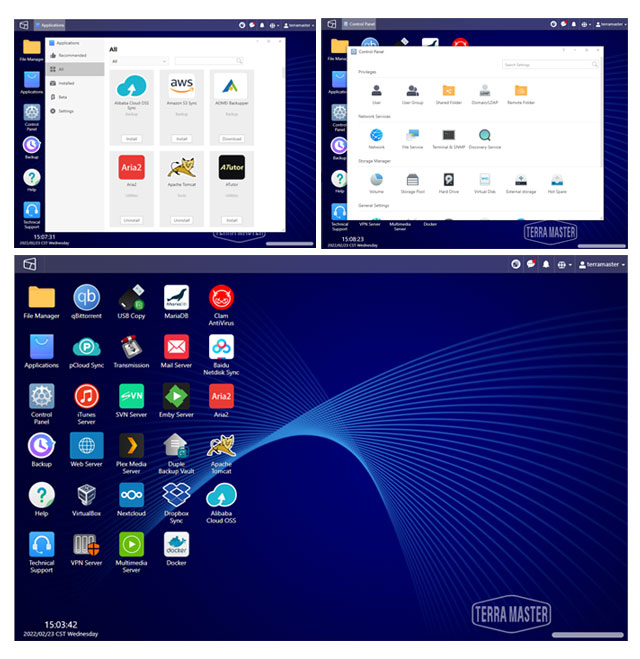 TNAS chạy trên TOS - một hệ điều hành TerraMaster được phát triển dựa trên Linux. Nghiên cứu sâu rộng về nhu cầu của nhiều người dùng doanh nghiệp khác nhau và sự phát triển liên tục của nhiều thế hệ TOS đã cho phép nó tích hợp các chức năng quản lý lưu trữ chuyên nghiệp toàn diện bao gồm quản lý mạng, quản lý quyền, quản lý lưu trữ và giám sát tài nguyên thông qua giao diện web phẳng, trực quan và thân thiện với người dùng. Nó cũng cung cấp hàng trăm ứng dụng miễn phí cho thị trường ứng dụng.